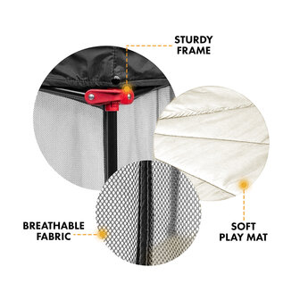 ✔ Materiaal: IJzeren frame, polyester, brandvertragend én muggengaas met maaswijdte van kleiner dan 1mm